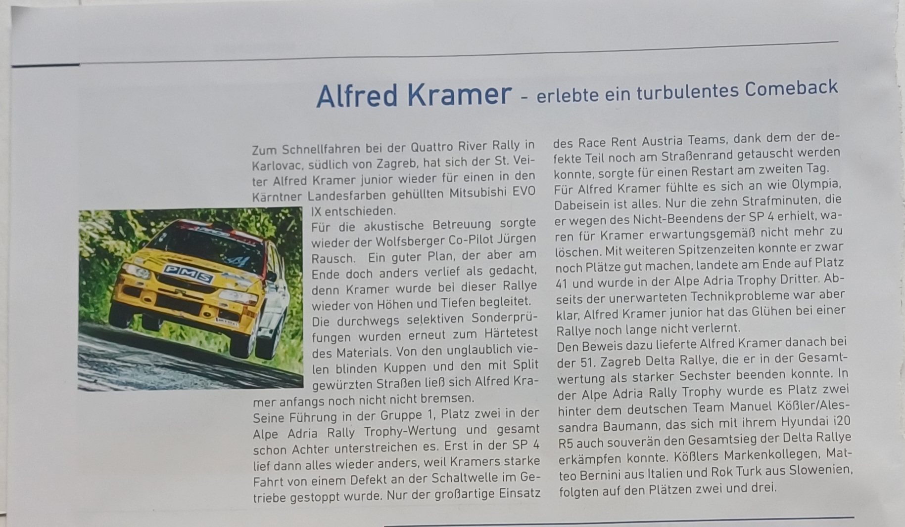 Eigentlich sollte der siebente Lauf der Alpe Adria Trophy ein wahres Fest für das Rallye Team Kramer werden, da für das Event in Kroatien diesmal ein Auto aus
